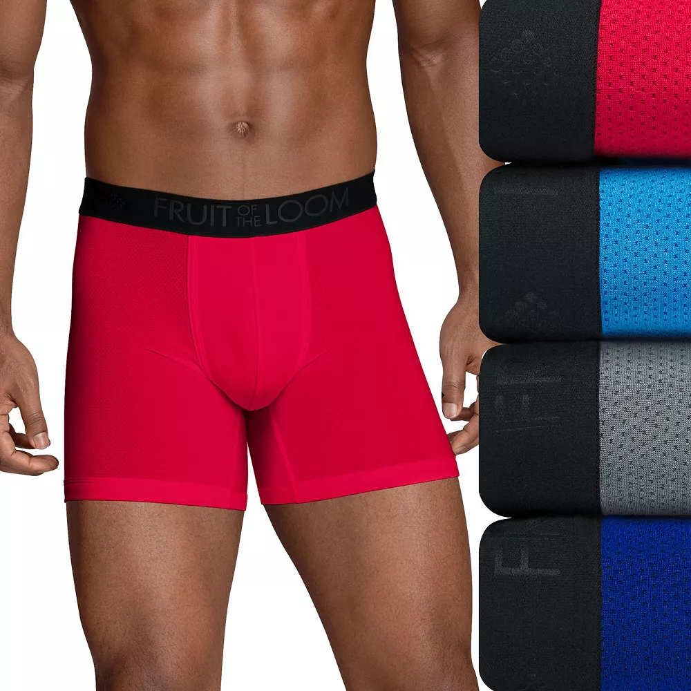 Feel-good underwear. Try these men’s Fruit of the Loom Signature boxer briefs, featuring a shorter-leg design and breathable micro-mesh fabric.