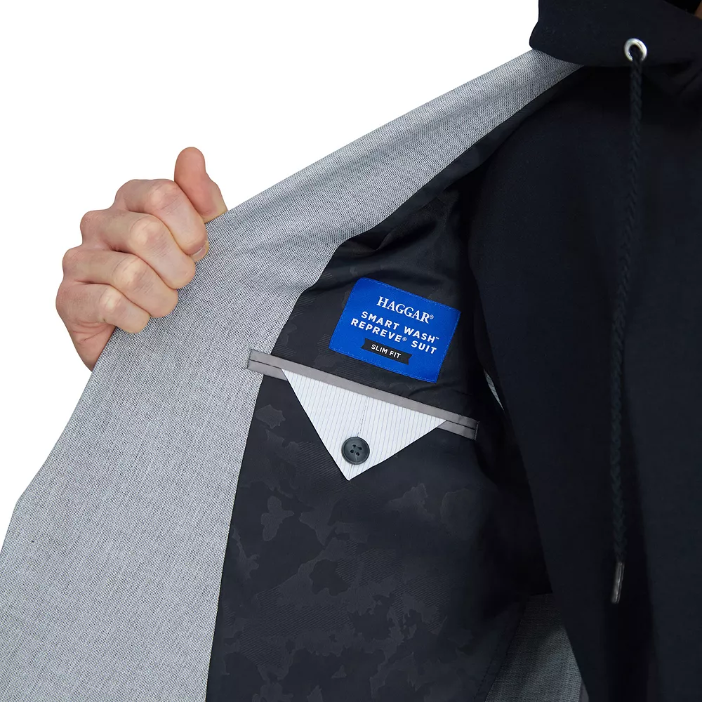 Life is never too busy to make responsible choices. The Haggar® Smart Wash™ Repreve® Suit is made with premium Repreve® fibers, designed to minimize waste and conserve natural resources. Caring for your suit has never been so easy with the innovative Smart Wash™ fabrics designed for home washing machines and dryers.