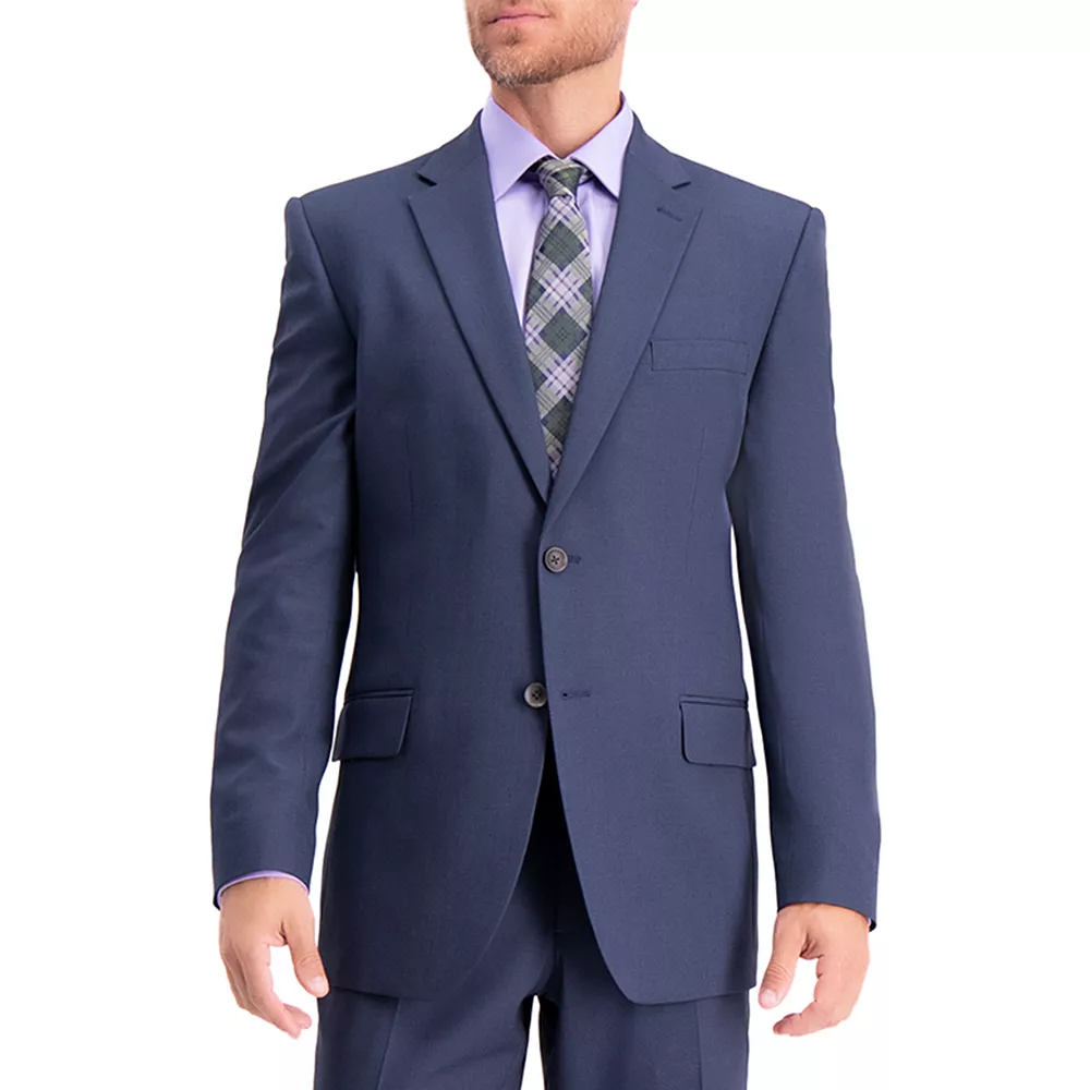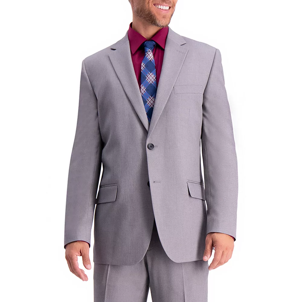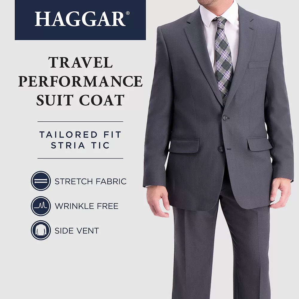 Stylish impression. Make more memories when you wear this men’s Haggar suit jacket to your next special event. Stretch fabric delivers all-day comfort.