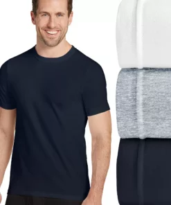 Instant upgrade. These men’s Jockey crewneck undershirts provide a premium cotton construction, lay-flat collar and longer length for enhanced comfort for every day. Twin-needle stitching provides superior durability.