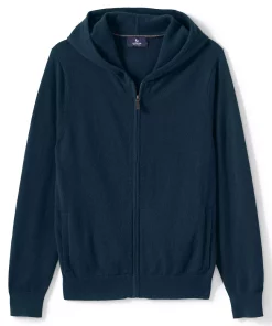 This men’s Lands’ End cashmere hoodie is loaded with supreme comfort and style.