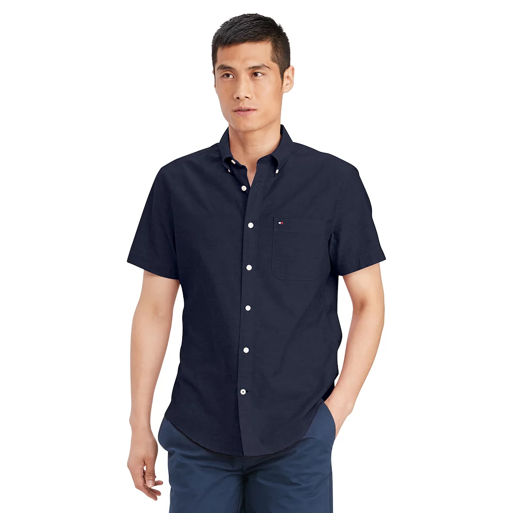Instantly elevate your style with this men’s button-down shirt from Tommy Hilfiger.